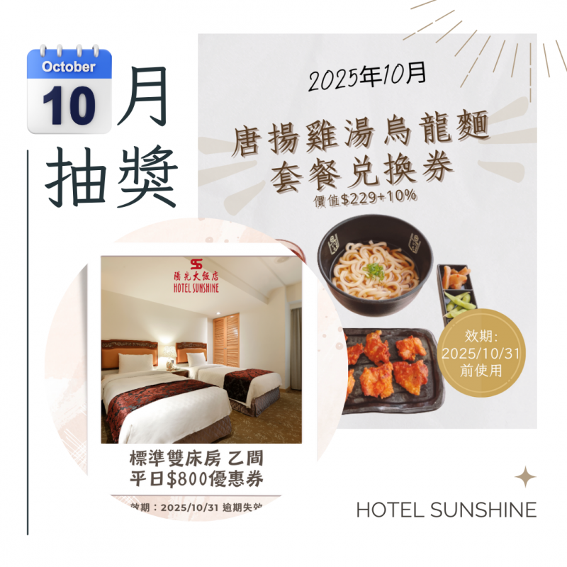 1.標準雙床房住宿優惠券乙張